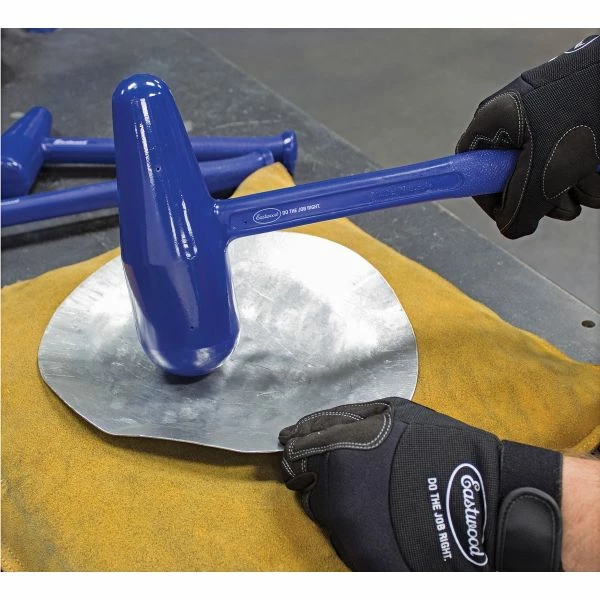 The Eastwood 48oz Dead Blow Polyurethane Bossing Mallet is what you need if you are working with metal and fabricating custom panels. Made in the USA.