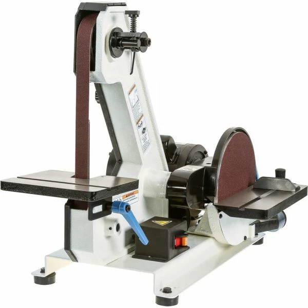 This Combo Belt/Disc Sander features two tilting cast-iron tables with miter slots, two 2″ dust ports, and the convenience of a single knob for belt tracking. Both tables tilt to 45 deg. for a variety of sanding and sharpening applications and the adjustable miter gauge ensures accurate angle settings. When it comes to versatility in a benchtop sander, this machine does it all!