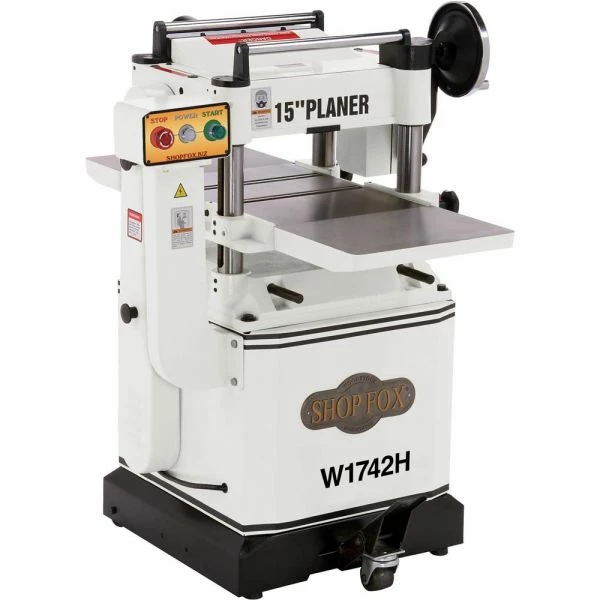 Theis 15″ planer is equipped with a pedestal-mounted thermal-overload safety switch, cast-iron extension wings, an enclosed cabinet stand, two-speed gearbox, a helical cutterhead and a built-in mobile base. You’ll find everything you ever wanted in a 15″ planer, including an affordable price. PLEASE NOTE: For machines manufactured before March 2015, order the D4018 for replacement carbide inserts. For machines manufactured after April 2015, order the D3379 replacement carbide inserts.