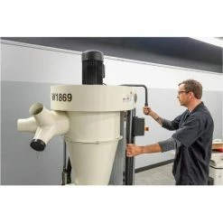 This Cyclone Dust Collector provides the efficiency of a 2-stage cyclone system with the portability of a single-stage dust collector. Features include high surface area pleated filters with paddles to mechanically knock off dust cake, remotely controlled magnetic switches, easy lid lifting levers for emptying collection drums, and a compact design for moving around the shop. Three models are available to suit most dust collection needs.