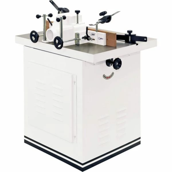 This 5 HP Spindle Shaper is sized to handle large raised-panel doors and extra-wide moulding profiles. With three included spindle sizes (3/4″, 1″, 11/4″) and four spindle speeds ranging from 3600 RPM to 10,000 RPM, choosing the right shaper cutter for the job will never again be a problem. The long spindle lengths also allow total flexibility for running tall cutters or stacking multiple cutters and spacers. Its heavy cast-iron split adjustment fence lets you dial in just the right amount of offset for edge profiling, and the heavy cast-iron table and stable base are made for the toughest jobs. This Shaper is made for production!